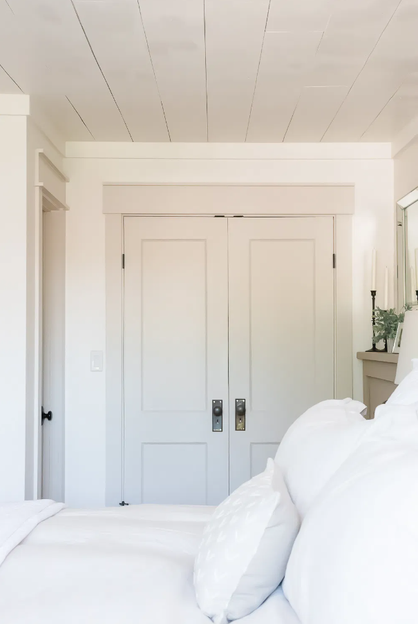 Snowbound paint on the walls with contrasting trim and door. (Making it in the Mountains)