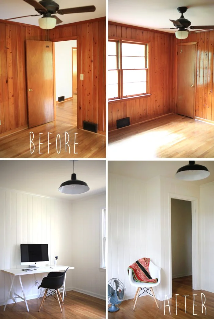 Transforming dark paneling into a clean, white slate. (All Sorts of Pretty)